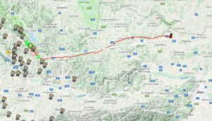 Weiter ostwärts ab Freistadt ist es dann zügig dahin gangen. Anfangs hätt ich nicht glaubt, dass es überhaupt ein 100er wird, aber…. gelandet ist man erst, wenn man am Boden steht :)”