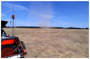 Vorher schon mal durchsprechen, was im Falle eines Dust-Devils zu tun ist und sobald sich eine drehende Wirbelstruktur abzeichnet schnell handeln: