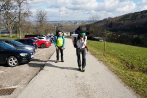 Der liebe Elmar holt mich und den Goldbären überpünktlich ab, sodass wir zeitig am Parkplatz ankommen. Dann wird bis zur Hitten Schusters Rappen geritten.