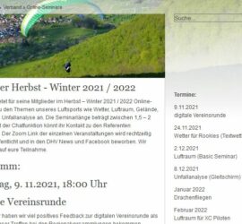 Der DHV bietet im Winter Online-Seminare zu den Themen unseres Luftsports wie Wetter, Luftraum, Gelände, Flugtechnik, Unfallanalyse an. Geplant sind:24.11.2021: […]